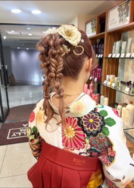 <編み下ろしポニーテール> 髪飾りがあってもなくても可愛い♪ 存在感のある編み下ろし個性派ポニーテール。 今っぽヘアにしたい方、他と被らないデザインで、特別感のあるスタイルに仕上げました◎